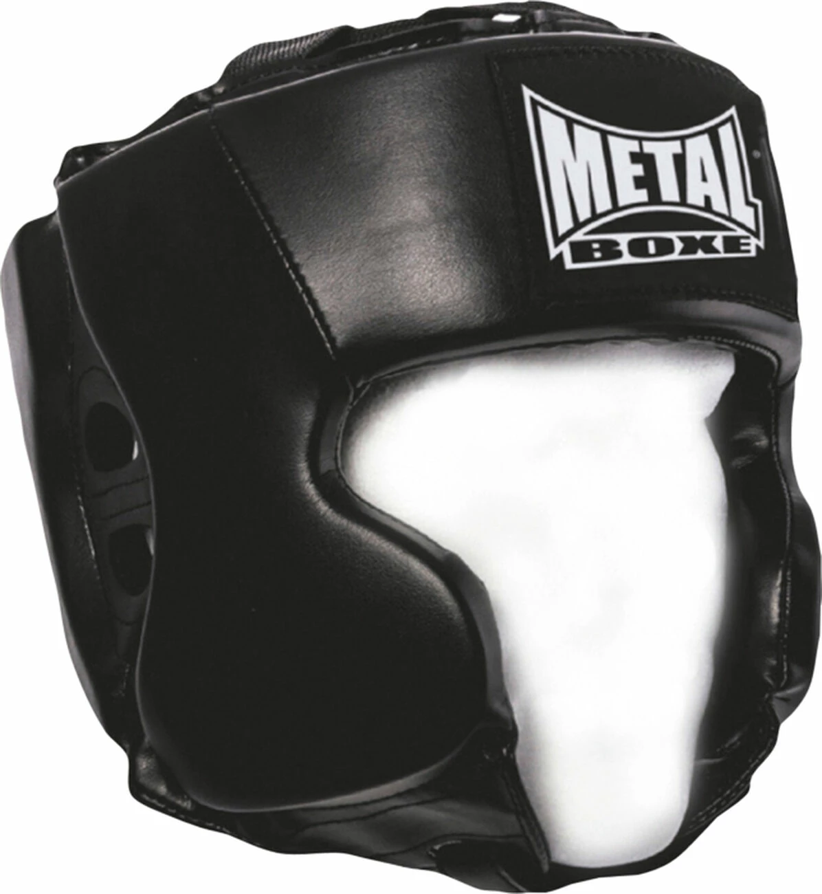 Modèle avec protège pommettes. Enveloppe PU, intérieur PVC. Rembourrage mousse POLYOIL+PPG+EVA. Protections des tympans. Serrage dessus de tête par laçages, serrage arrière et menton par velcros. Mise en place très rapide, excellent maintien, léger et confortable. Entretien facile : vaselinez régulièrement les coutures et passez à l’intérieur un chiffon légèrement humide après chaque entraînement. Idéal pour les écoles de boxe.